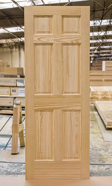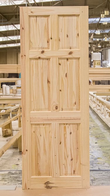 Stiles and rails made of edge-glued pine core laminated with sliced-cut clear pine veneer.